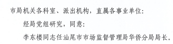 关于李东楼同志任职的通知