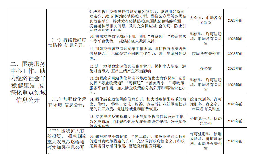汕尾市市场监督管理局2022 年政务公开工作要点分工方案
