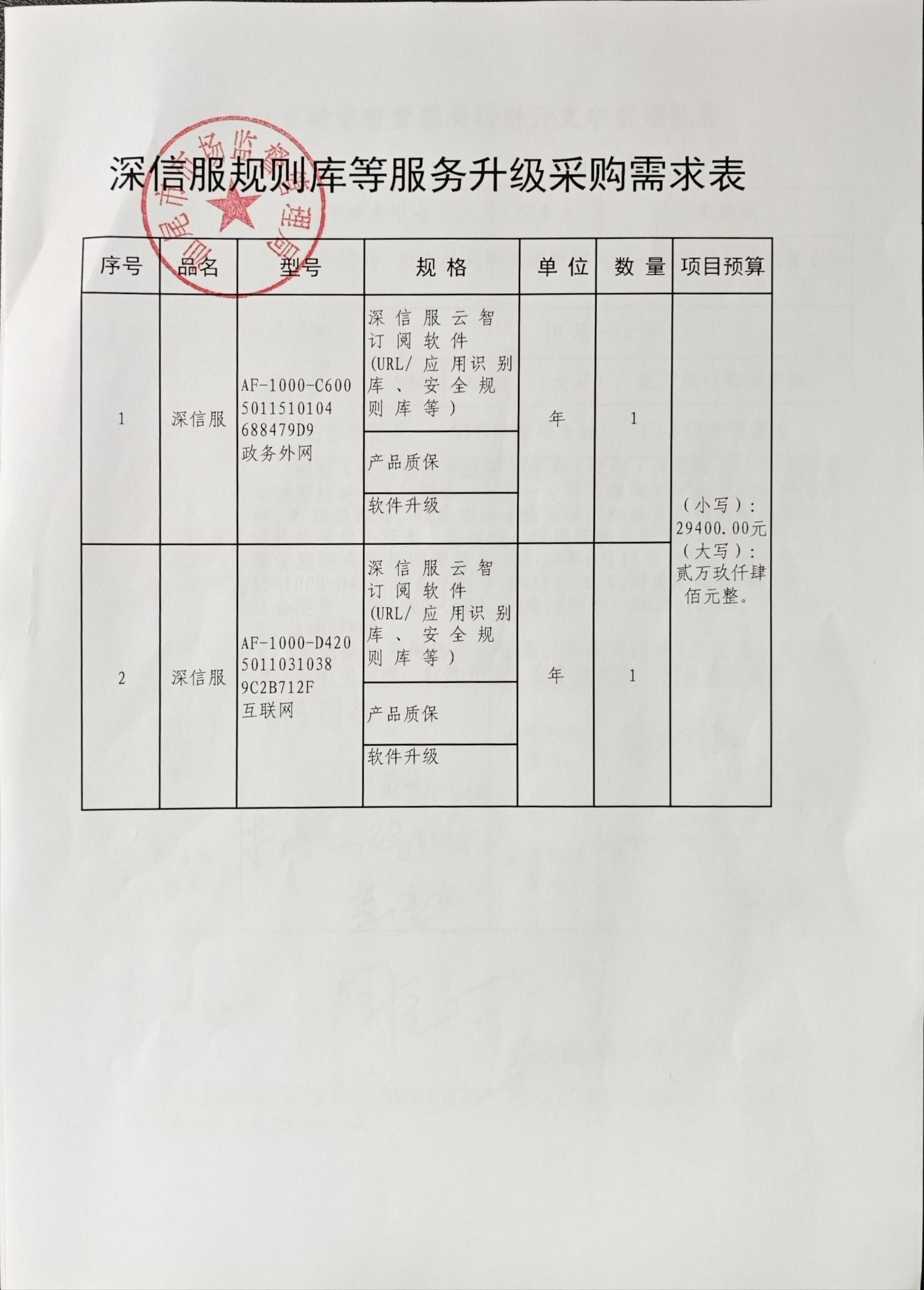 汕尾市市场监督管理局(以下简称采购人)因工作需要,现就互联网侧、政务外网侧深信服防火墙规则库等升级服务采购项目进行询价采购,邀请符合资格条件的供应商参加。