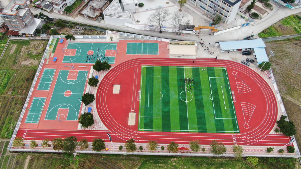 2021年12月,广东省乡村振兴驻龙颈镇帮镇扶村工作队通过多方协调筹资200多万元,帮扶该校改造运动场,修建了排水沟,铺设了透气式塑胶跑道,翻新了足球场、篮球场、羽毛球场等,运动场焕然一新。