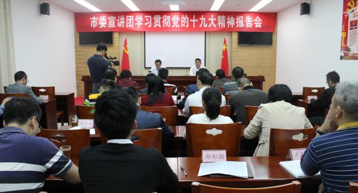 11月30日 ,根据市委的统一安排,市委学习贯彻党的十九大精神宣讲团成员、省党代会代表、华师附中汕尾学校林放校长到我局作学习贯彻党的十九大精神宣讲报告。局机关全体干部职工参加了报告会。