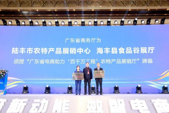 随后举行了广东省电商助力 “百千万工程” 农特产品展销厅授牌仪式,陆丰市农特产品展销中心、海丰县食品谷展厅获奖。