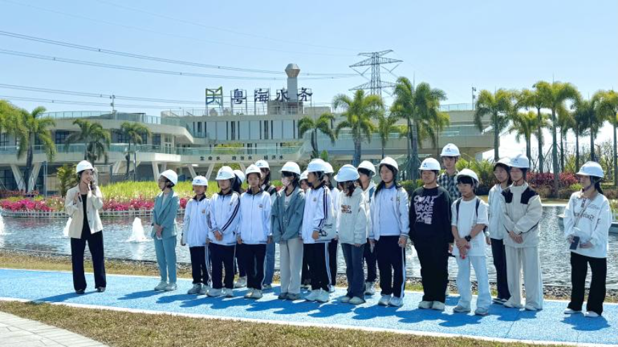 在参观活动现场,全国人大代表秦丽莎化身节水领航员,与其他节水宣传员一起和学生们面对面交流互动,从青少年的视角出发,配合浅显易懂的语言引导学生们一步步了解汕尾水资源情况与“一滴原水的净化”“一滴污水的回归”之旅。