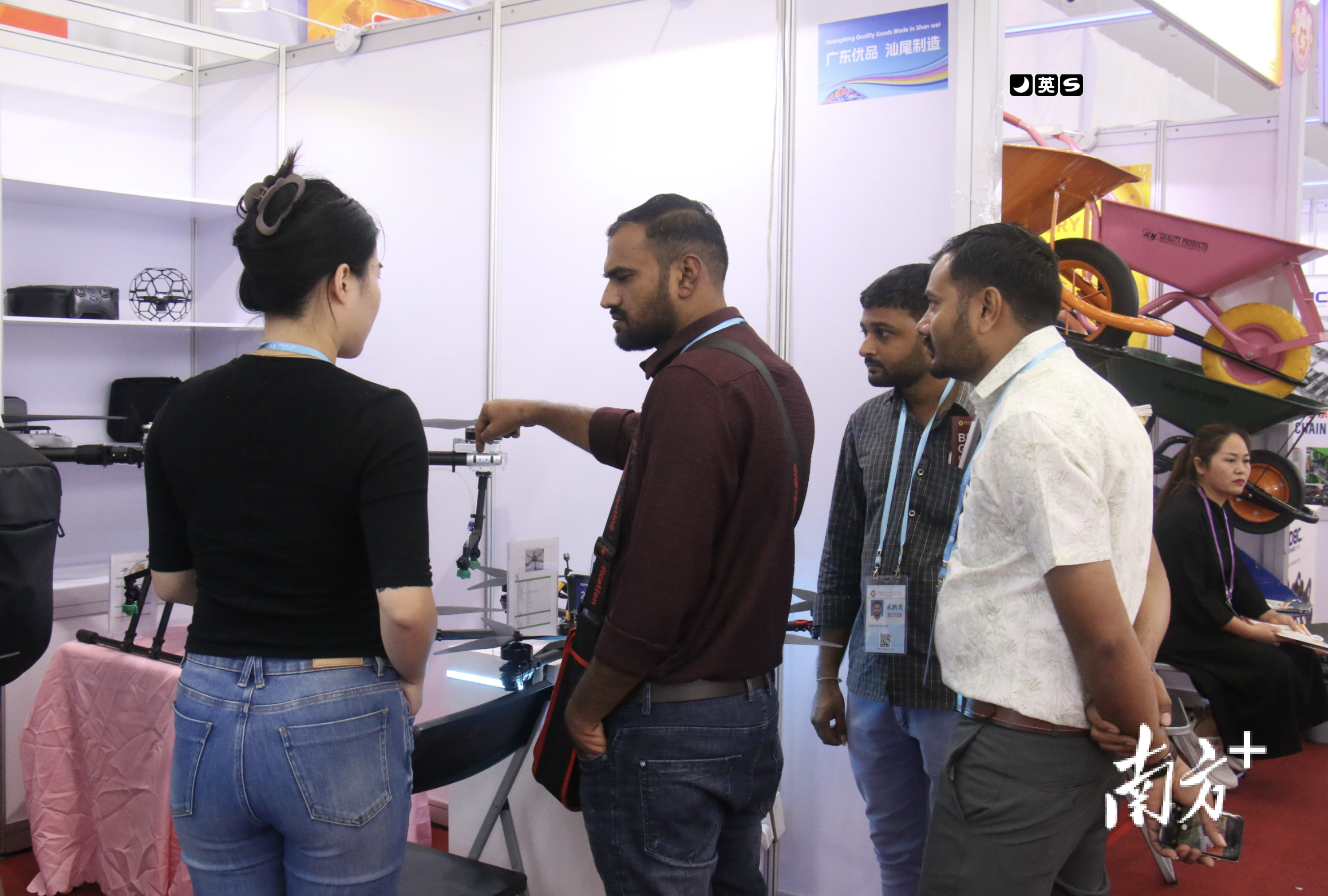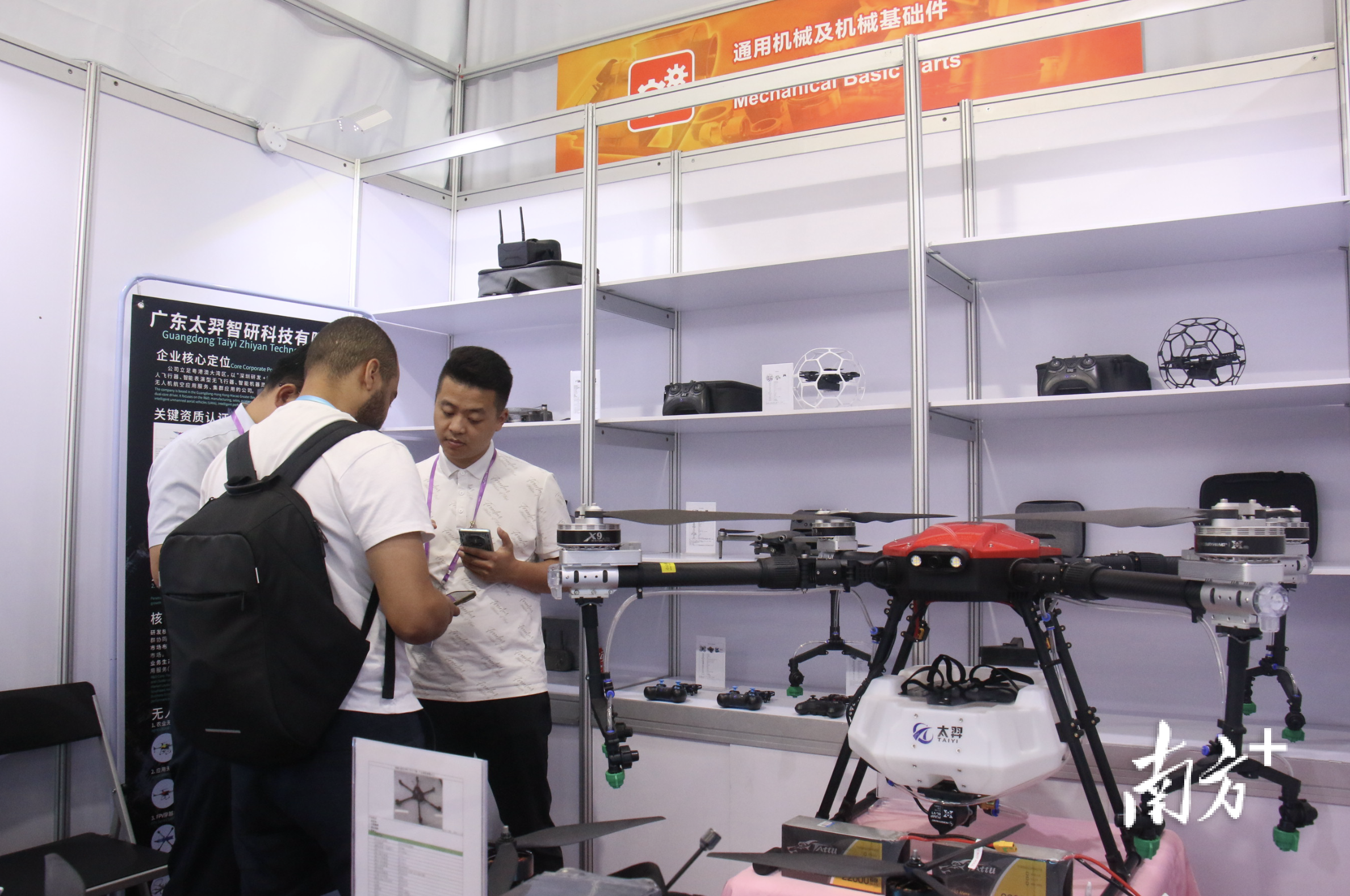 在工程机械展区,广东太羿智研科技有限公司的农业无人机被中东客户围得水泄不通。这位首次亮相广交会的“新秀”,准备了20款高新产品,其中1款为自主研发的专利产品。“这是我们首次登上广交会舞台,团队这段时间反复调试产品性能,研发新品,就是想借助展会这个平台向世界展示汕尾智能装备的实力,打开东南亚、欧洲等新兴市场。”总经理李俊伟语气坚定,他的笔记本上已记录上百页客户需求:“反响超出我们的预期,有南美客户当场订了20台,还有人为百台订单洽谈售后服务。”
