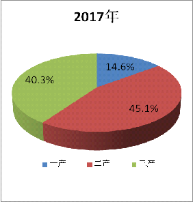 经济综合实力增强,产业结构不断优化。2017年,全市地区生产总值(GDP)850.91亿元,比改革开放前(1978年)增长76.9倍,年均增长11.8%,比建市前(1987年)增长38.4倍,年均增长13.0%(见图1)。人均GDP从1978年的286元增加到2017年的28628元,按可比价格计算增长了40.7倍,年均增长10.0%。一般公共预算收入36.77亿元,比1978增长114.6倍,年均增长13.0%。经济实力大幅提升的同时,经济结构也发生了深刻变化,实现了从农业社会到工业社会的转变。三次产业结构由1978年的47.3:25.7:27.0调整为2017年的14.6:45.1:40.3(见图2)。其中第一产业比重明显下降,40年间调整下降了32.7个百分点;第二、三产业比重分别提高了19.4个和13.3个百分点。第二、三产业在国民经济中所占份额由1978年的52.7%提高到85.4%,工业和服务业成为地区经济发展的主导力量。