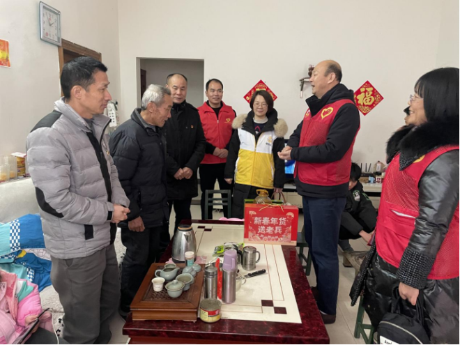 肇庆市退役军人事务局积极开展2024年元旦春节期间拥军优属慰问活动,市退役军人事务局党组书记蔡向阳率队分别组成慰问组,走访慰问烈属、一等战斗功臣、最美退役军人、拥军模范代表和在边海防艰苦地区(维和部队)服役的现役军人家庭、军队离退休干部等代表,向他们致以节日的问候和新春的祝福,感谢他们为国防和军队建设作出的贡献,为他们送去党委、政府的关心关怀,帮助他们解决实际问题。