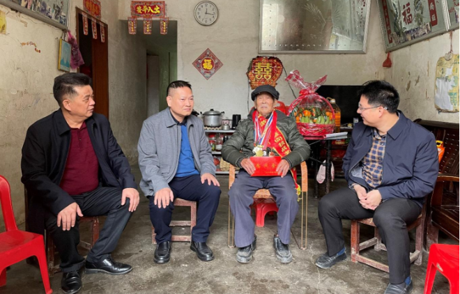 阳江市退役军人事务局党组书记、局长王周凯率队赴阳春市走访慰问2位百岁高龄的抗日老兵。询问了老兵的身体和生活情况,并衷心祝福他们身体健康、阖家幸福。看到“爱唱红歌”的百岁老人身体健康、乐观豁达,慰问组一行感到十分欣慰。