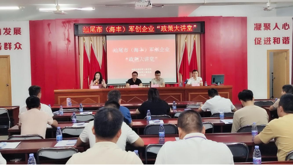 2023年9月20日,汕尾市退役军人事务局联合海丰县退役军人事务局在海丰县附城镇新山村红色文化馆联合举办海丰县军创企业“政策大讲堂”,对国家出台的《关于促进新时代退役军人就业创业工作的意见》进行线下解读。退役军人举办军创企业“政策大讲堂”,是促进退役军人成为经济社会发展的重要力量,进一步助力海丰广大退役军人成功创业,让军创企业充分享受党和政府的“政策红利”的重要举措,海丰县各镇(场)退役军人服务站负责人以及35家军创企业参加活动。