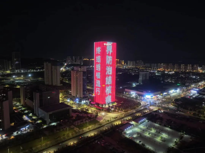 2024年3月24日晚上,市卫生健康局组织市公共卫生中心围绕今年的宣传日主题,在城区金融大厦开展“为终结结核病 点亮城市的红”(Light Up for TB)亮灯活动。一条条醒目的标语成为了一道亮丽的风景线和广大市民注目的“焦点”,让市民能够更直接的认识结核病,扩大了宣传教育的覆盖面和影响力,提高了市民对结核病的知晓率,共同关注“终结结核流行”的美好愿景,呼吁全社会共同关注结核病防治。