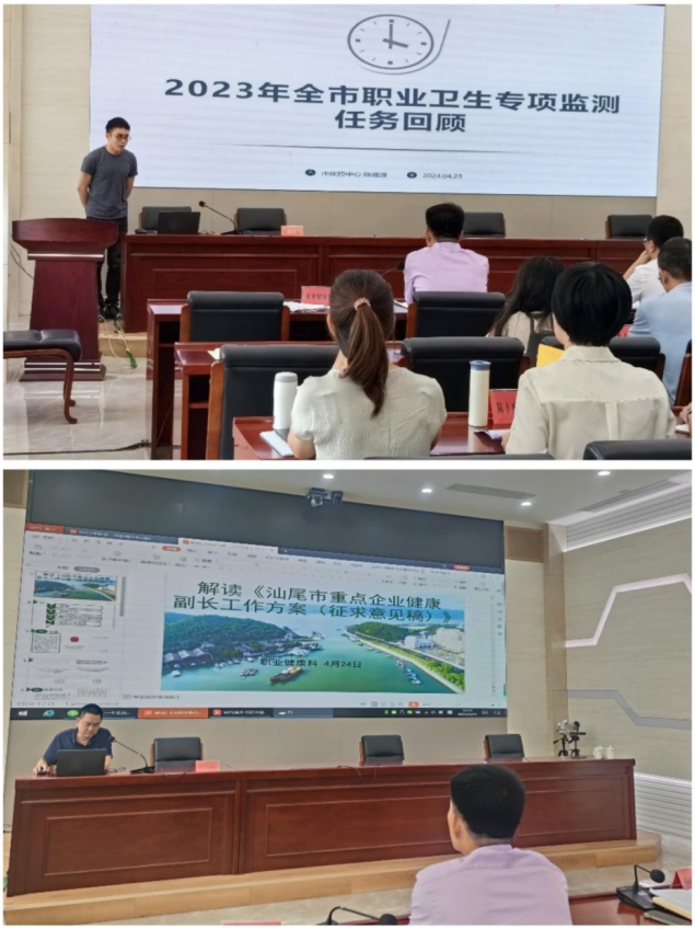 4月23日下午,市卫生健康局召开2024年全市职业健康暨健康副厂长动员部署工作会议,传达贯彻落实全省职业健康工作会议精神,通报2023 年全市职业健康工作情况,部署 2024年职业健康重点工作,解读《汕尾市重点企业健康副厂长工作方案(征求意见稿)》。市、县两级卫生健康局分管领导、局相关科室负责同志及疾控中心领导、职业卫生负责同志、县级卫监所负责同志、公立职业病防治机构领导参加会议。