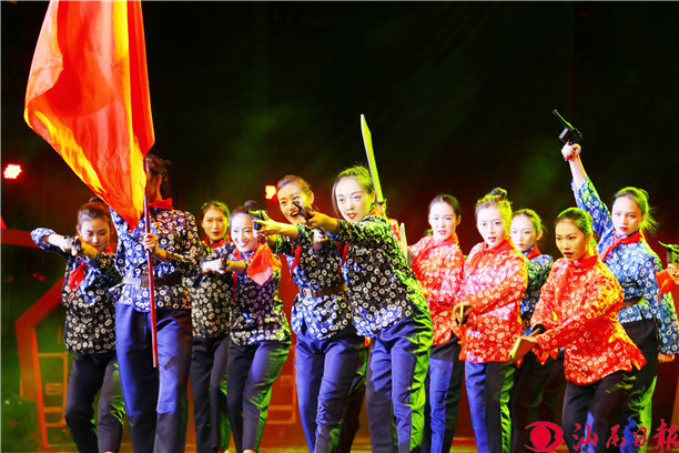 晚会现场,舞台字幕亮起醒目的前言:“习近平总书记告诫我们:不能忘了老区,老区人民养育了我们……”“汕尾是一个承载着红色记忆的全域革命老区,红色是火焰和鲜血的颜色,也是海陆丰这块土地的英雄底色……”晚会在磅礴有力的旁白声中拉开了帷幕。表演分为序《不忘初心》、第一篇章《铁血忠魂》、第二篇章《中流砥柱》、第三篇章《家国情怀》和尾声《祝福祖国》五个部分。演出融合了歌舞、情景剧、朗诵、武术等丰富多彩的艺术形式,演员以饱满的情感,嘹亮的歌声,优美的舞姿,生动演绎了海陆丰波澜壮阔的革命历史和感人肺腑的红色故事。精彩的节目在观众热烈的掌声中轮番上演,情景剧《一对母子30年的时空对话》引起了观众的共鸣,让不少观众潸然泪下。演出尾声,全体观众肃然起立,挥动手中红旗,齐声合唱《我和我的祖国》,将晚会推向高潮。两场演出共吸引了2000多人观看。