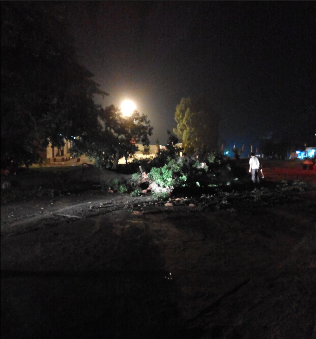 今日凌晨四时二十分许,市园林局接报,位于市区东城路信利电子厂门口路中间的古榕树,树主干断裂,多支大树干横七竖八躺在路面,阻断一侧车道,致使行人车辆无法通行,园林局接报后,立即派员赶赴现场,连夜组织施工,经过两个多小时的抢险工作把倒在路上的树干移走,并将树枝树叶清扫干净,确保今早全路段畅通。