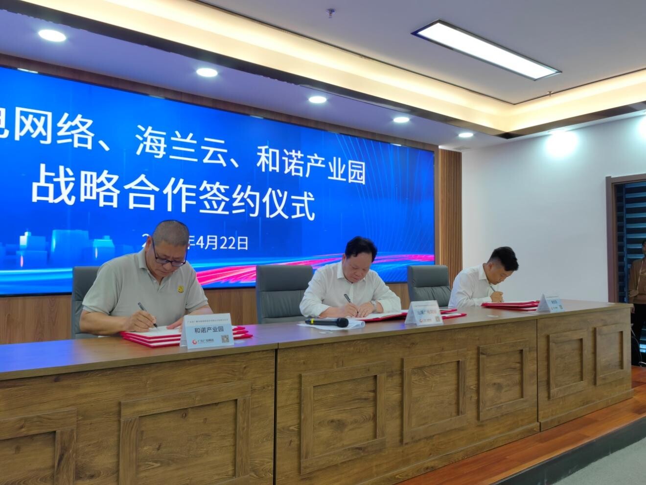 随后,广东广电网络汕尾分公司党委委员、副总经理陈华泰代表分公司与和诺数字产业园和深圳海兰云数据中心科技有限公司签订了战略合作协议书。