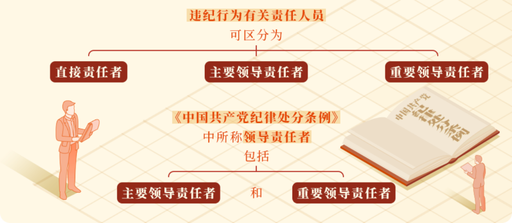 《中国共产党纪律处分条例》规定,违纪行为有关责任人员可区分为直接责任者、主要领导责任者、重要领导责任者。这三者的区分如下——